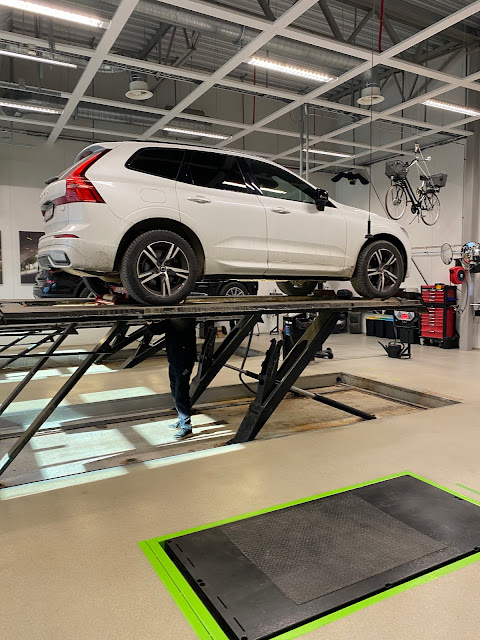 | Idag är det jäktigt. Först ska bilen besiktas, redan 11.15 var vi på plats i Norrtälje. Proceduren gick i rasande fart, så redan strax efter halv tolv var bilen undersökt och godkänd. |