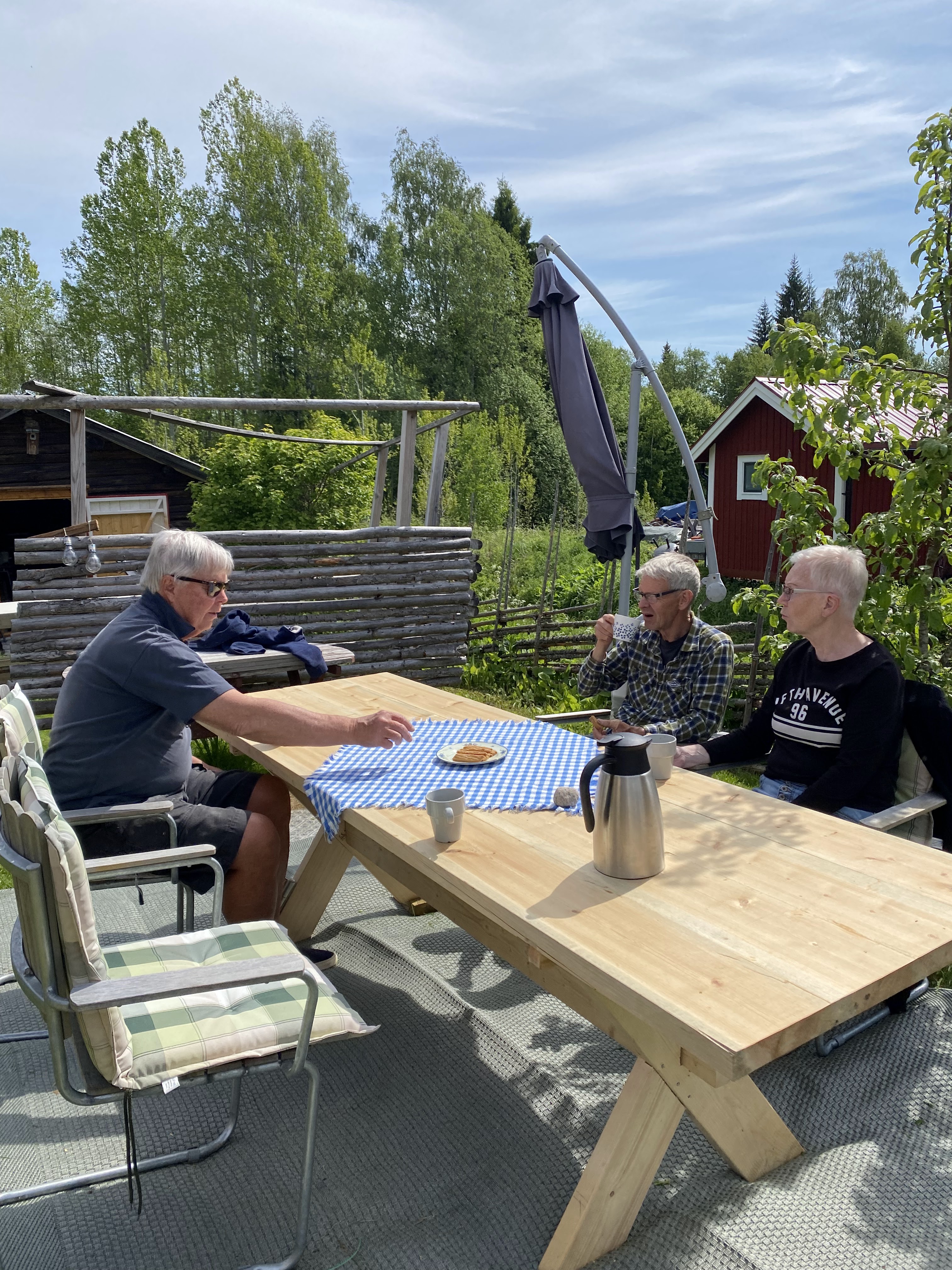 | Vårt egentillverkade bord har premiäranvänts. Att lägga en matta under bordet utomhus kanske är lite originellt, men den här rackarn ska tydligen motstå både smuts och väta. |